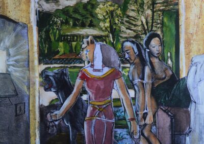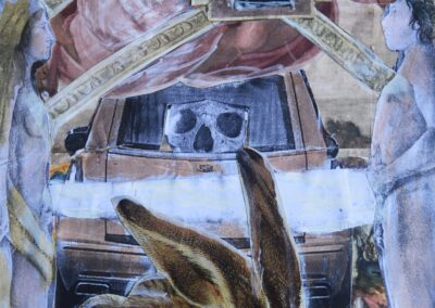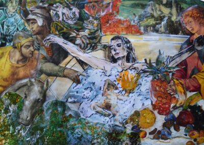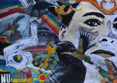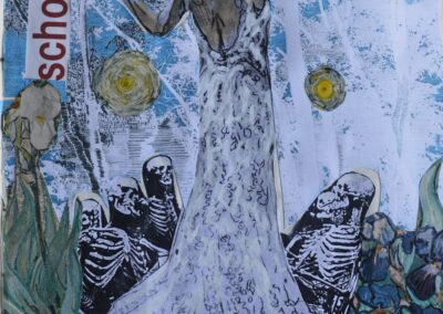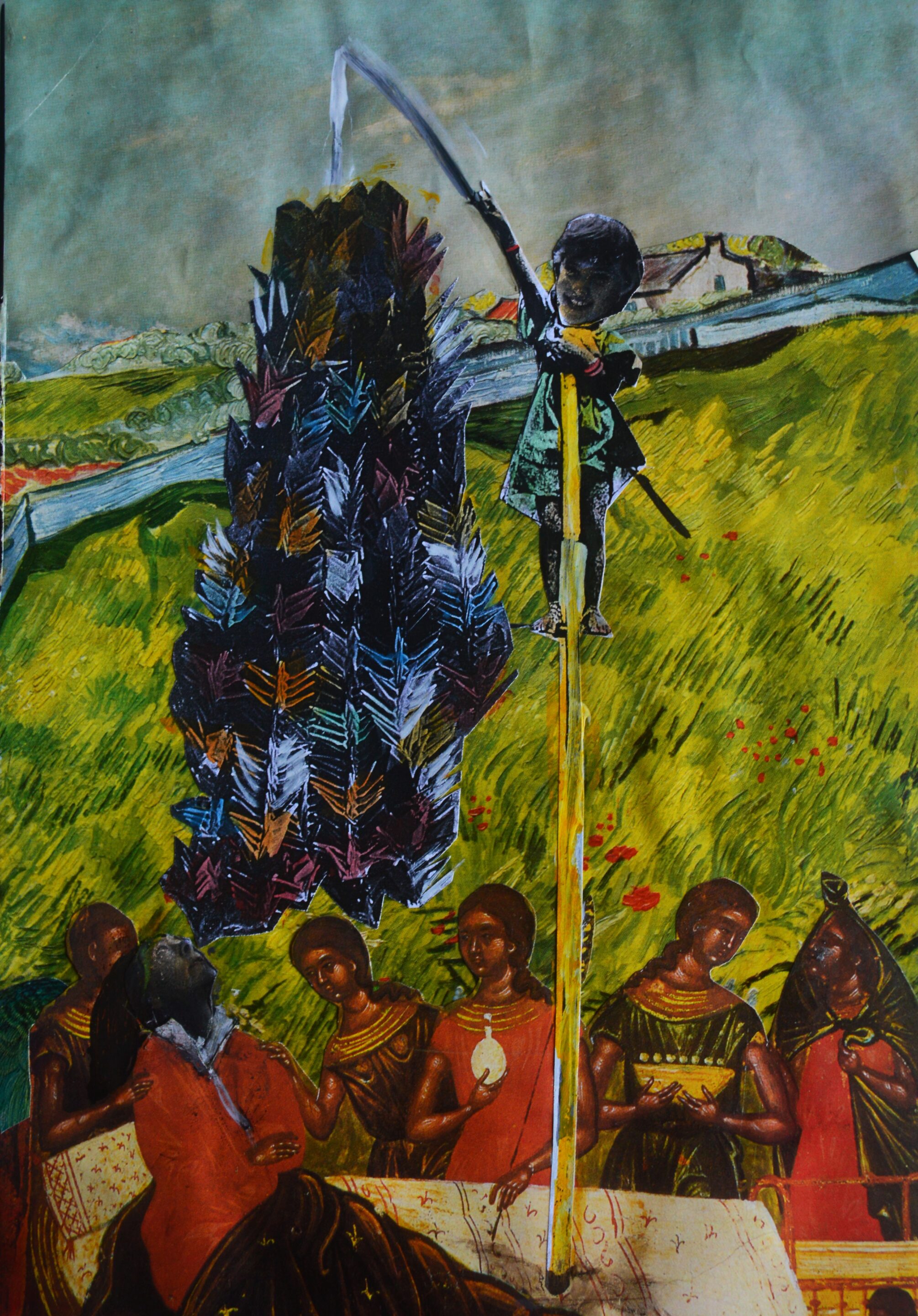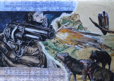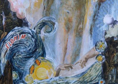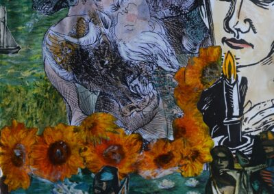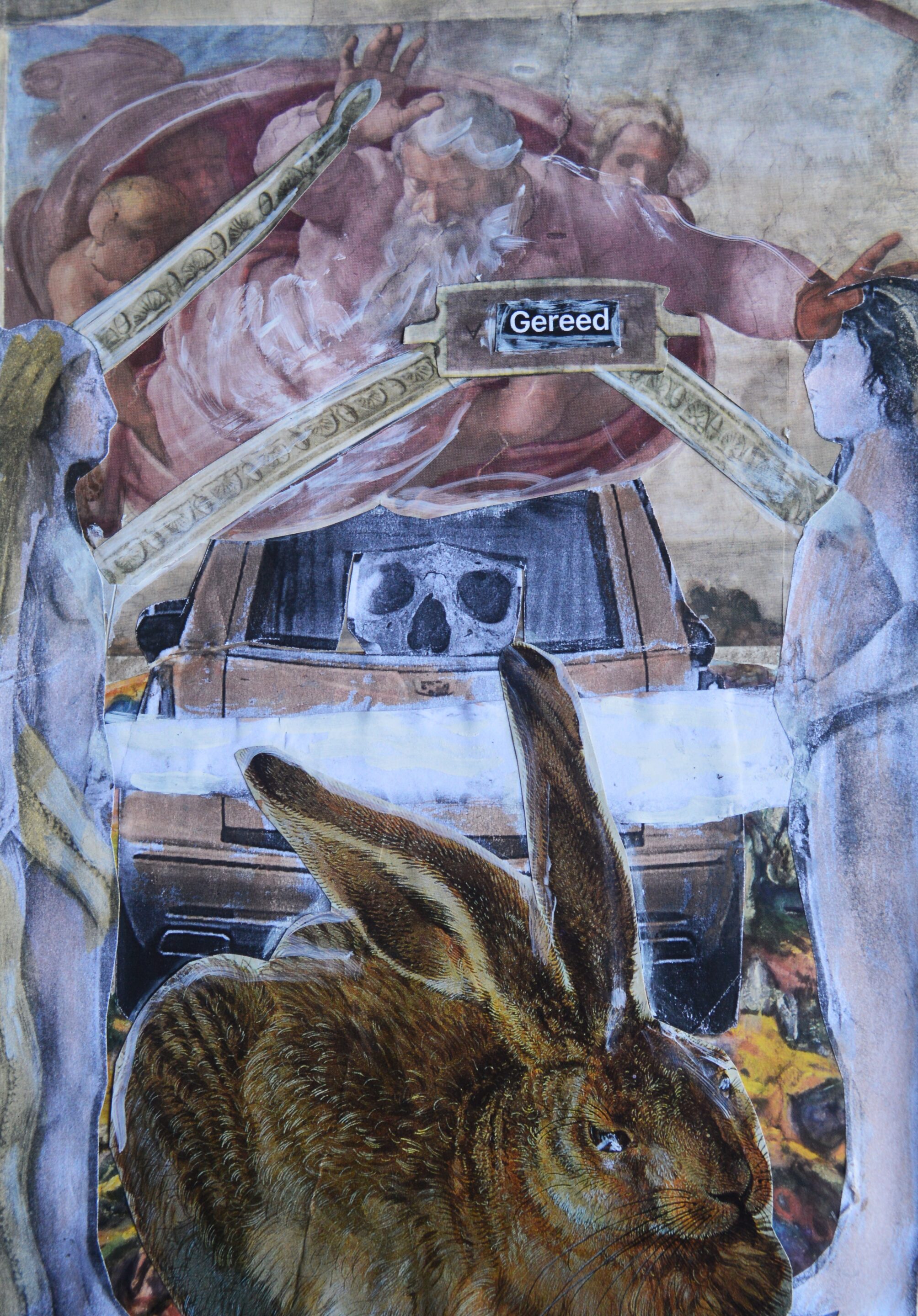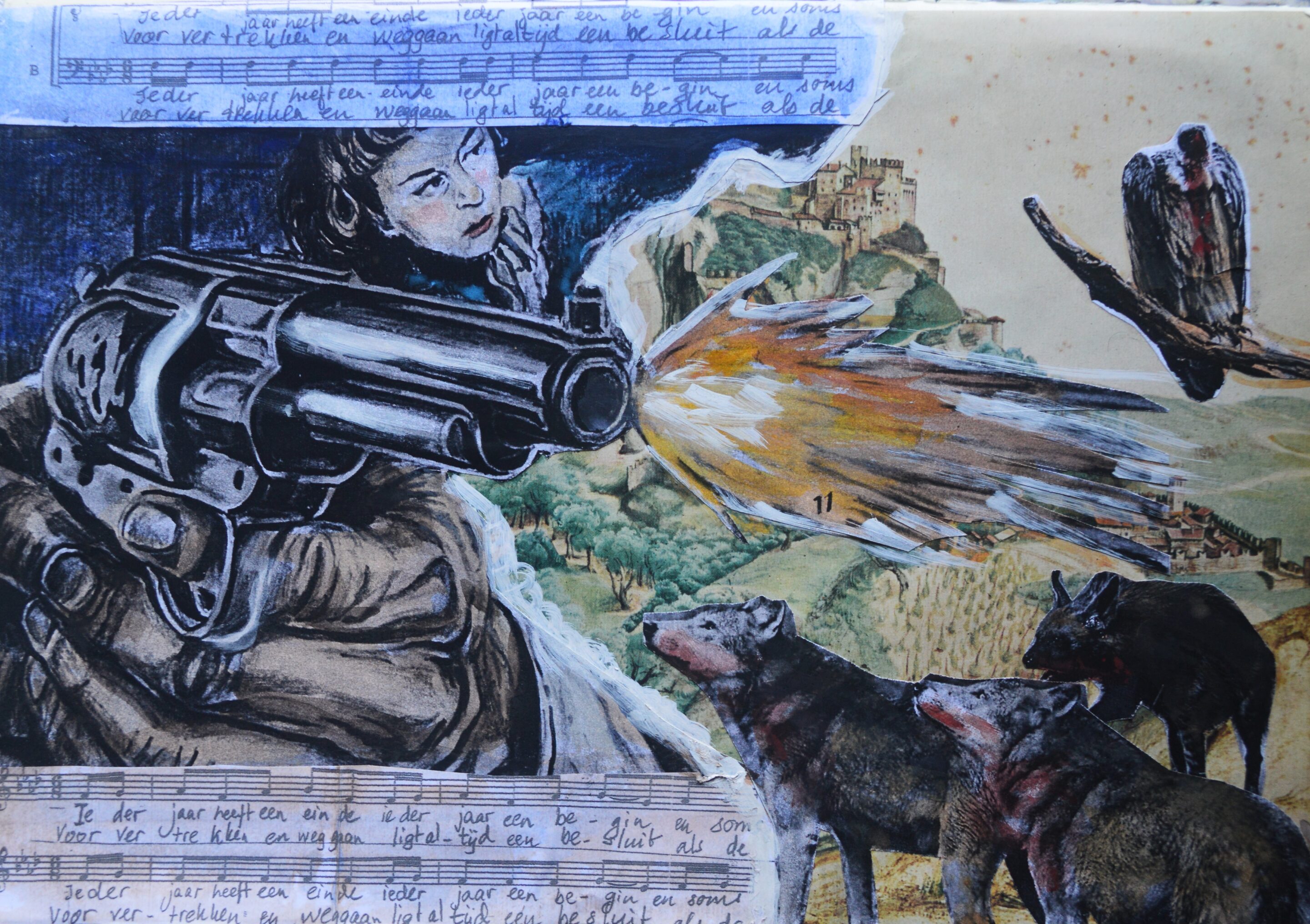 Thoughts are little graphics, drawings or collage’s I make to loosen up from the intensity and concentration whom I need when making huge drawings. I scrutinise my inner life to discover. I just see what happens while working with various techniques. Sometimes a world is vast and I stay to make a series of it.