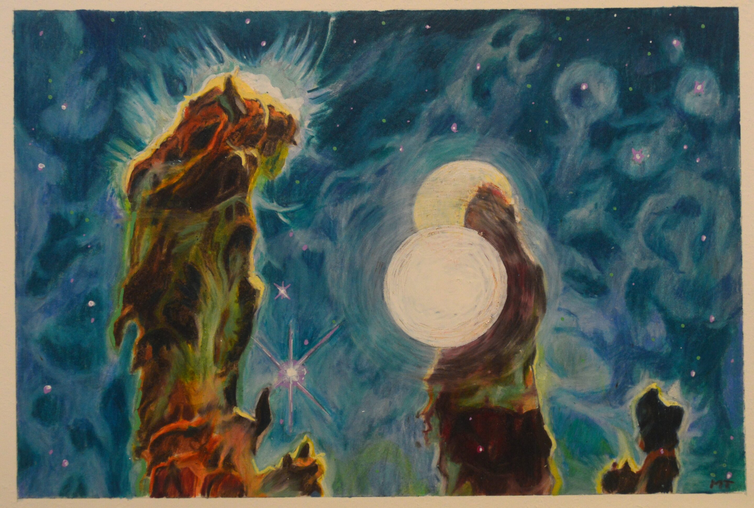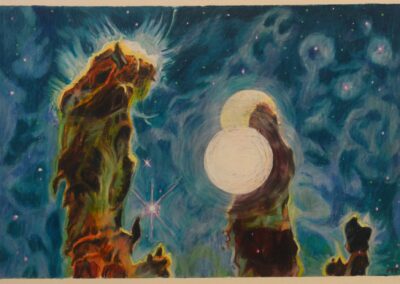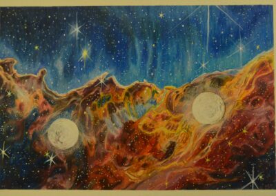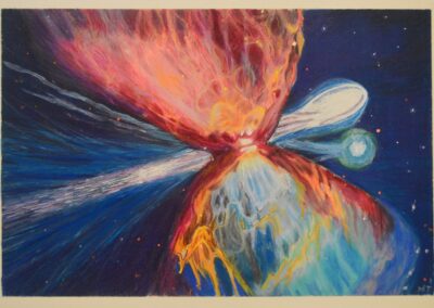 Thoughts are little graphics, drawings or collage’s I make to loosen up from the intensity and concentration whom I need when making huge drawings. I scrutinise my inner life to discover. I just see what happens while working with various techniques. Sometimes a world is vast and I stay to make a series of it.